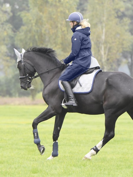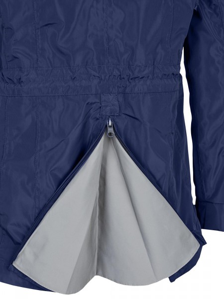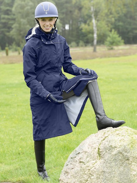 - elastische Beinschlaufen halten den Mantel beim Reiten/bei Wind schützend am Oberschenkel