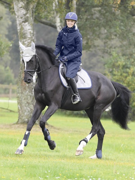 - Reißverschluss-Reitschlitz mit integriertem Regenschutz aus reflektierendem Material, zum Schutz des Sattels und für mehr Sichtbarkeit