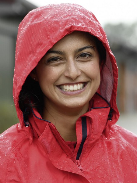 - Druckknopfriegel am Reißverschluss, um die Jacke auch geöffnet in Position zu halten