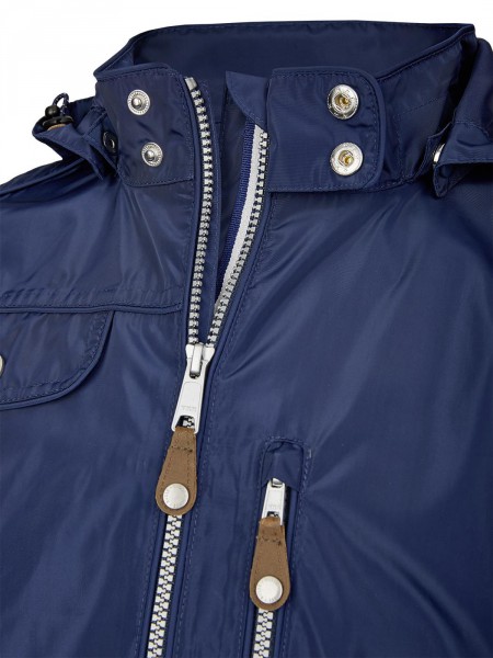 - Druckknopfriegel am Reißverschluss, um die Jacke auch geöffnet in Position zu halten