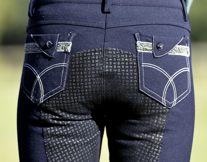 • hochwertige Reithose für Kinder und Jugendliche, hübsch verziert mit Strasssteinen, Nieten, Zierknöpfen und Ziernähten an den Taschen