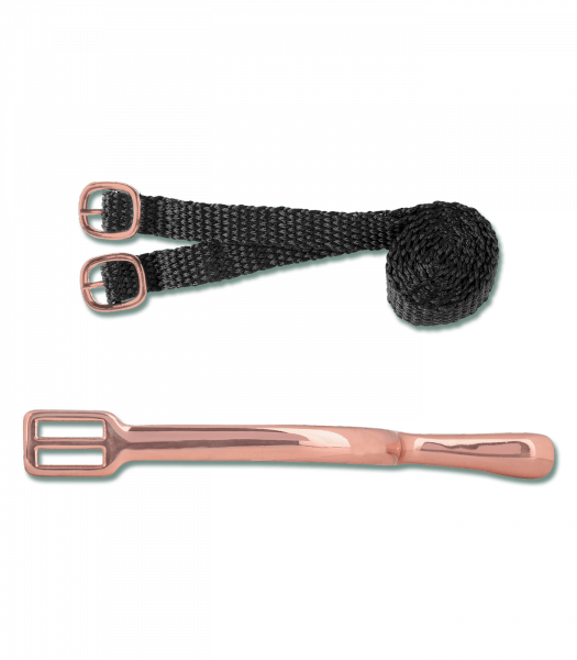 Hochwertige Edelstahlsporen in roségold Legierung. Perlonriemen mit Edelstahlschnalle in roségold. Paar