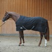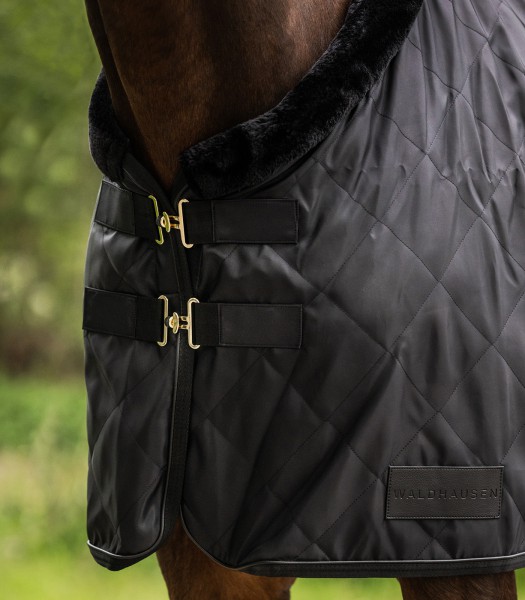 Hochwertige Transportdecke gefüttert mit künstlichem Kaninchenfell für die kalten Tage. Das Kaninchenfell speichert optimal die Körperwärme des Pferdes, ist besonders weich und verhindert Scheuerstellen. Abgerundet wird die Decke durch einen künstlichen Fellkragen. Mit längenverstellbarer und abnehmbarer Kreuzbegurtung, zweifachem T-Frontverschluss und Metallösen zur Befestigung eines Schweifriemens.