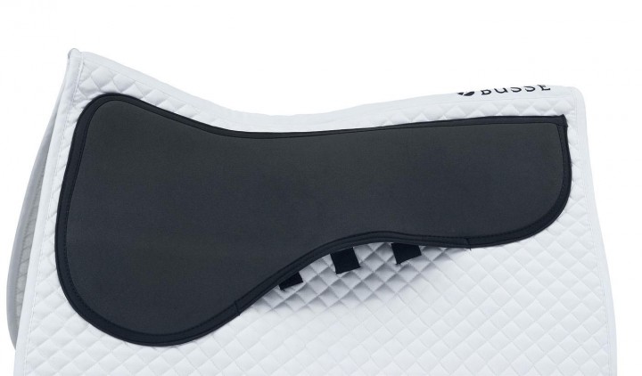 - inklusive zusätzlicher, herausnehmbarer Einlagen aus ebenfalls 6 mm starkem Zellkautschuk, die individuell getrennt voneinander links und rechts und vorne und hinten eingelegt oder herausgenommen werden können, um den Sattel optimal auf dem Pferd auszubalancieren bzw. den Abstand zur Wirbelsäule insgesamt zu vergrößern