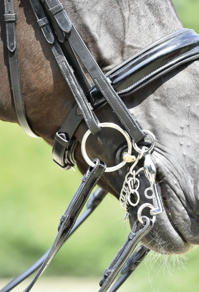 • Reithalfter beidseitig ins Genickstück einzuschnallen
