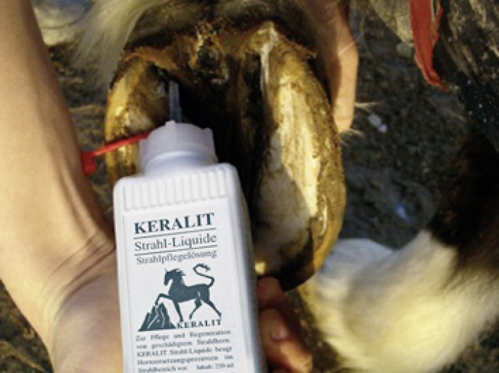 - einfach in die trocken gereinigten Strahlfurchen geben und verteilen, das Strahlhorn wird bereits nach 3-4 tägiger Anwendung fester